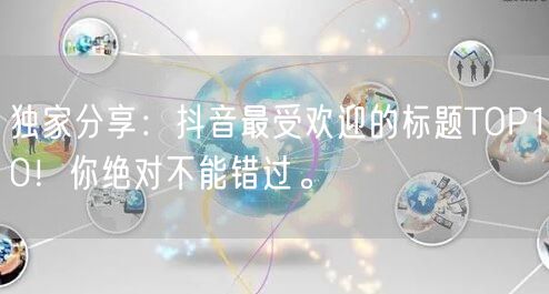 通过本文的独家分享,相信您已经了解了抖音上最受欢迎的标题TOP10以及如何制定吸引人的抖音标题。希望这些标题能够为您的视频内容带来更多的关注和点赞!快来试试吧!