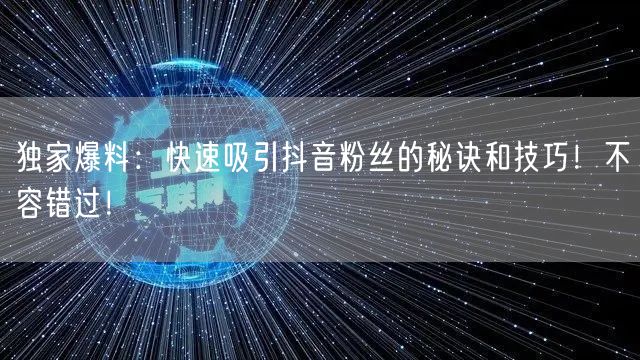 在当今社交媒体风靡的时代,抖音作为一款领先的短视频社交平台,吸引了数以亿计的用户。如何在众多用户中脱颖而出,快速吸引大量抖音粉丝,成为了许多人关注的焦点。本文将为你独家爆料,揭示吸引抖音粉丝的秘诀和技巧,让你轻松成为抖音达人!