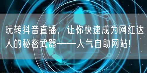 总之,玩转抖音直播,成为网红达人的秘密武器之一便是人气自助网站。但需要注意的是,使用这类工具的同时,还需要注重内容创作和与观众的互动,才能真正赢得观众的喜爱和信任。