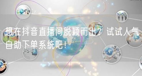 人气自助下单系统是一种通过科技手段提升抖音直播间人气和曝光度的工具。它可以帮助直播间主人快速吸引观众,提高直播间的关注度。使用该系统,用户可以自主设置直播间的人气数量,让直播间在短暂时间内迅速增长人气。