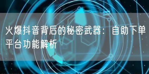 随着互联网的快速发展,抖音以其独特的魅力吸引了无数用户的目光,成为当下最火爆的社交媒体平台之一。在这背后,有一个秘密武器默默发挥着巨大的作用,那就是自助下单平台。本文将为您深入解析这一秘密武器的功能及其运作原理。