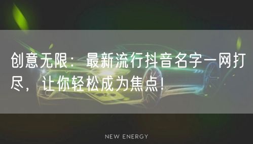 在抖音这个充满创意和活力的平台上,一个独特而富有吸引力的名字往往能让你轻松成为焦点。今天我们就来聊一聊关于最新流行的抖音名字,让你在众多的用户中脱颖而出。
