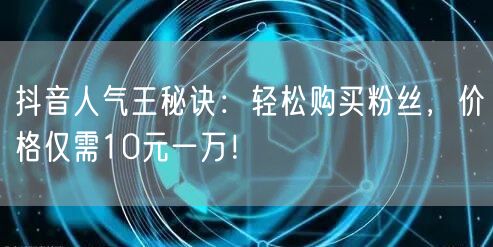 通过以上内容,我们了解了抖音人气王背后的秘密——购买粉丝。购买粉丝是一种快速增粉的方式,价格实惠,能帮助你成为抖音营销达人。但也要注意保护自己的账号安全,避免遭受不必要的损失。