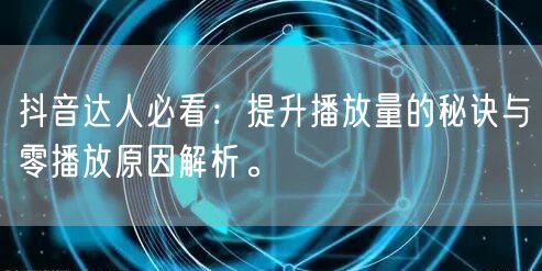 抖音已成为现代人生活中不可或缺的娱乐社交平台之一。对于抖音达人而言,如何提升视频播放量、解决零播放问题,成为他们关注的焦点。本文将为大家解析提升播放量的秘诀与零播放原因,助力大家在抖音平台上取得更好的成绩。