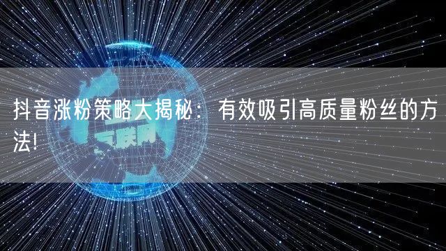通过以上分析和介绍,相信你已经对如何在抖音上吸引高质量粉丝有了更深入的了解。希望这些策略能够帮助你在抖音上获得更多的关注和成功!