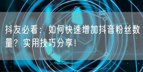 以上就是一些快速增加抖音粉丝数量的实用技巧。只要你坚持努力,不断尝试和改进,相信你的抖音账号一定能成为热门,轻松获取更多粉丝!