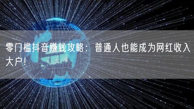 通过本文的零门槛抖音赚钱攻略,相信普通人也能成为网红收入大户。只要你定位准确,创作优质内容,积极互动,扩大影响力,并持续学习,就能在抖音平台上实现创业梦想,获得高收入。让我们一起努力,成为抖音网红中的佼佼者!