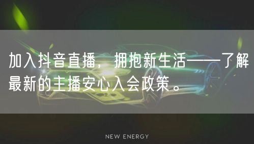 为了吸引更多有才华的人加入抖音直播,平台不断推出新的政策,其中最新的主播安心入会政策尤为引人关注。该政策旨在为主播提供更多保障和支持,让主播在直播道路上更加安心。