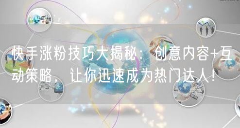 随着移动互联网的普及,短视频平台成为了人们生活中必不可少的一部分。快手作为短视频领域的佼佼者,吸引了众多用户和内容创作者。如何在快手平台上吸引更多粉丝,成为热门达人,是每位内容创作者追求的目标。本文将为你揭秘快手涨粉技巧,助你迅速成为热门达人!