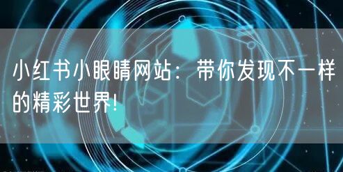 小红书小眼睛网站带你探索不一样的精彩世界!这里不仅有丰富的特色内容推荐,还有社交电商的新体验。快来加入小红书小眼睛网站,发现生活中的美好吧!