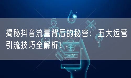 通过本文的解析,希望能帮助你掌握抖音流量的秘密和五大运营引流技巧。在实际操作中,还需不断尝试、调整策略,以实现最佳效果。在短视频营销领域,只有不断学习和创新,才能在抖音的巨流中脱颖而出,实现流量变现。