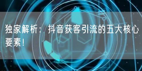 抖音作为当下最热门的社交媒体平台之一,吸引了众多企业和个人前来寻求获客引流的机会。本文将为您独家解析抖音获客引流的五大核心要素,助您在抖音平台上取得更好的成绩。