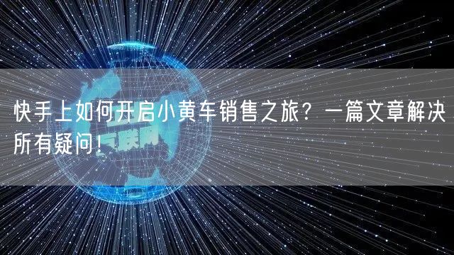 通过本文的指导,您将了解如何在快手上开启小黄车销售之旅,实现盈利目标。抓住短视频红利,让您的产品在快手平台上焕发新的生机!