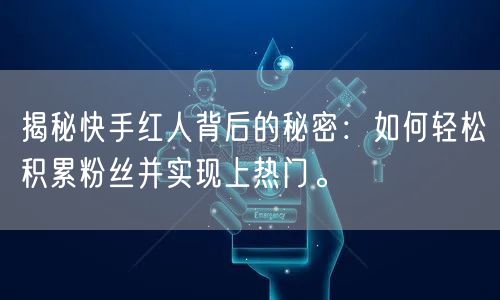 揭秘快手红人背后的秘密:如何轻松积累粉丝并实现上热门。