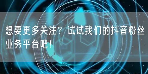 在抖音这个充满创意和活力的舞台上,每一个用户都渴望得到更多的关注。但是,如何快速有效地增加粉丝数量,扩大自己的影响力呢?如果您正为此苦恼,不妨试试我们的抖音粉丝业务平台吧!