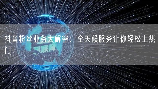 总之,通过本文的解密,相信你已经对抖音粉丝业务有了更深入的了解。如果你想轻松上热门,不妨尝试一下我们的全天候服务,让我们帮你实现抖音梦想!