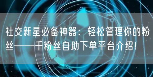 随着社交媒体的普及,越来越多的人开始在各大社交平台展示自己的才华和魅力。为了提升社交影响力,轻松管理粉丝变得尤为重要。这时,千粉丝自助下单平台应运而生,成为了社交新星们的必备神器。