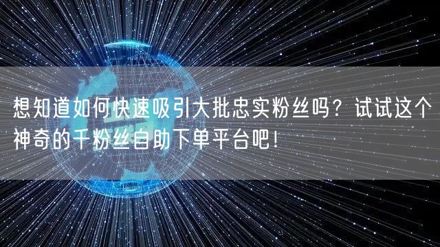 你是否在寻找一种快速吸引大批忠实粉丝的方法?今天,我要向你介绍一个神奇的千粉丝自助下单平台,它将帮助你实现这个目标。